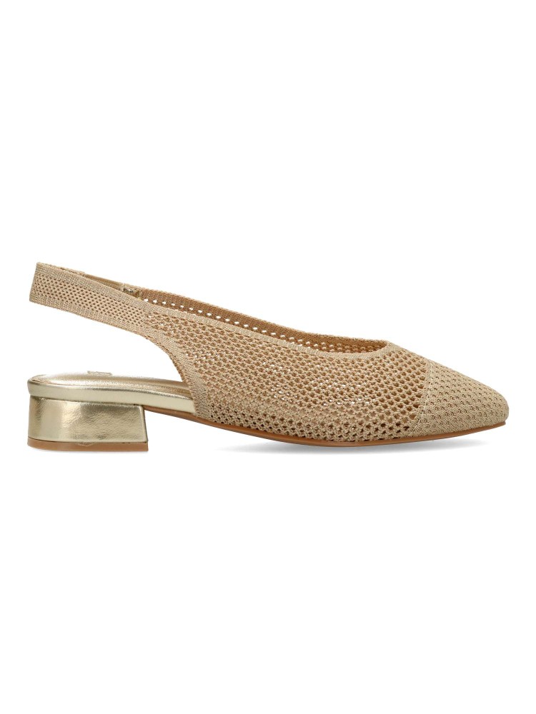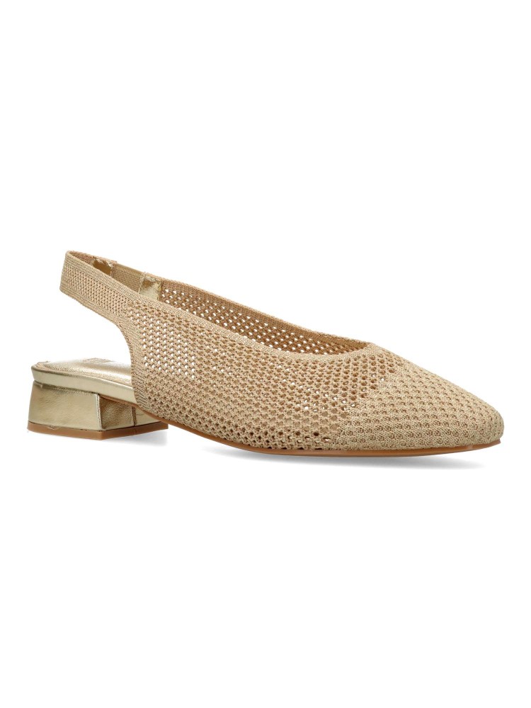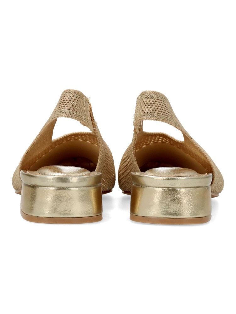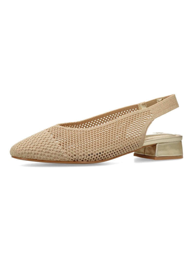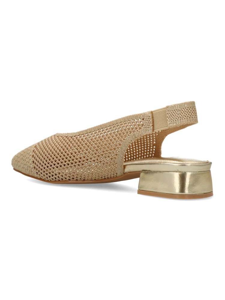 Salón de mujer con elástico en tira trasera para un mejor calce. Fabricada en textil rejilla, con suela de goma. Plantilla acolchada. Color oro. Tacón de 3 cm. Diseño elegante, cómodo y versátil, que podras combinar con todos tus looks de temporada.