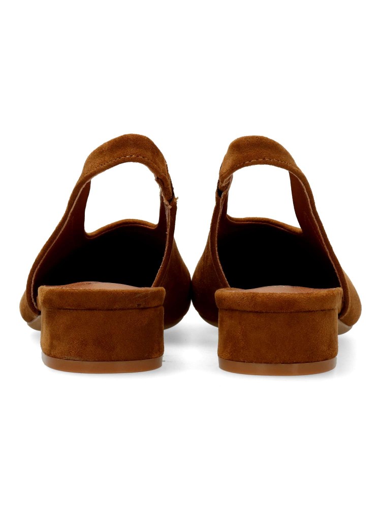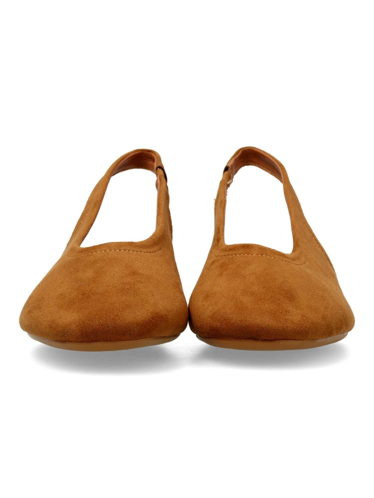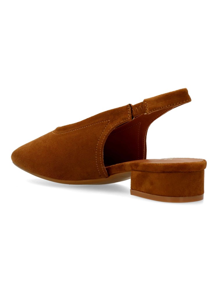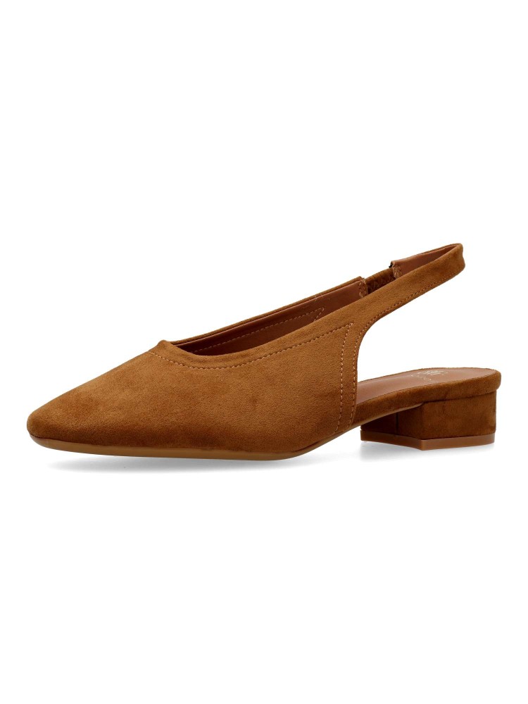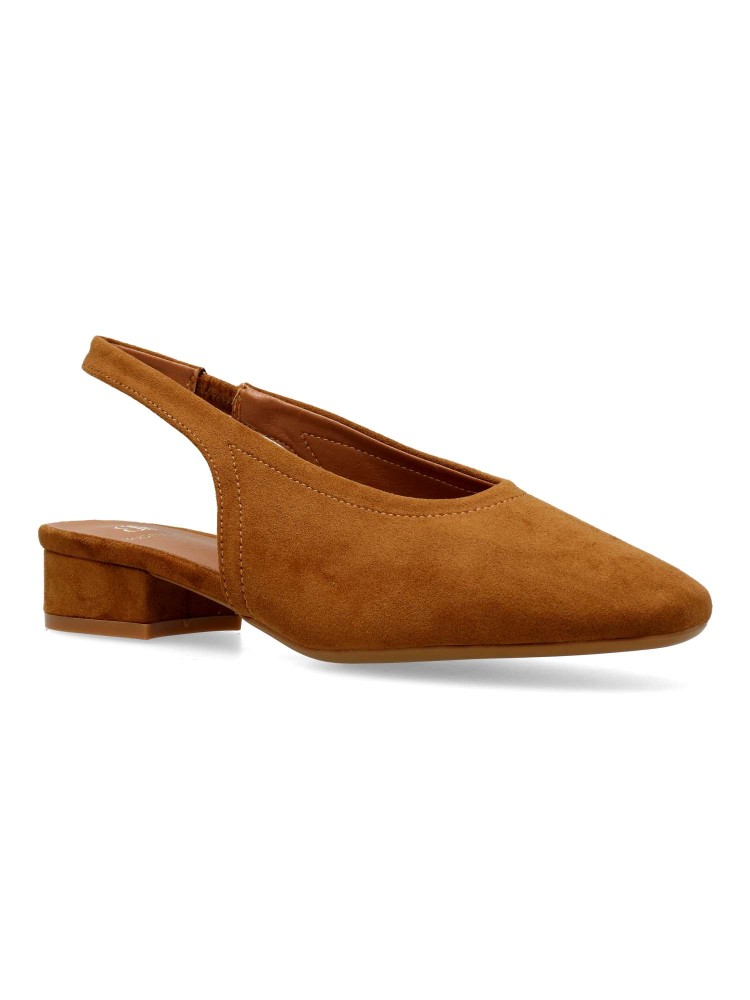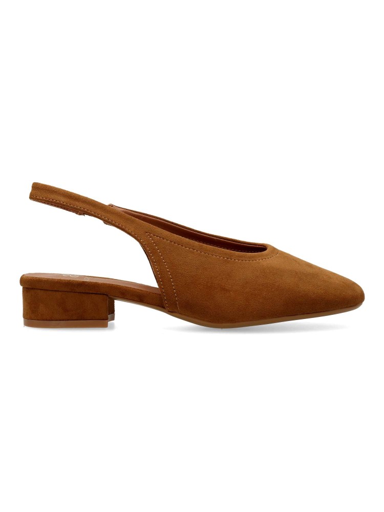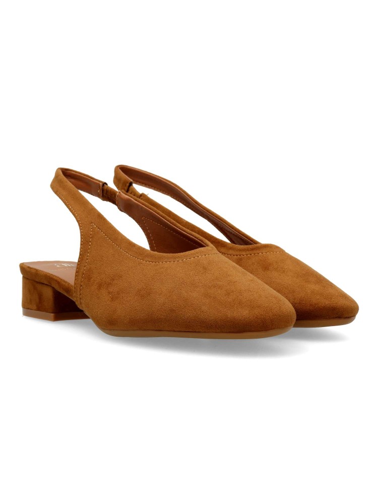 Salón de mujer con punta redonda y destalonado. Fabricada en piel sintética antelina, con suela de goma. Plantilla acolchada. Color camel. Tacón de 3 cm. Diseño elegante, cómodo y versátil, que podras combinar con todos tus looks de temporada.
