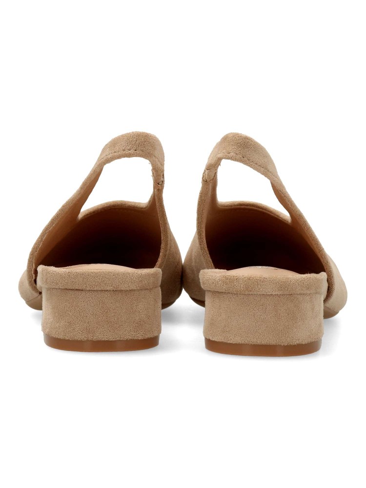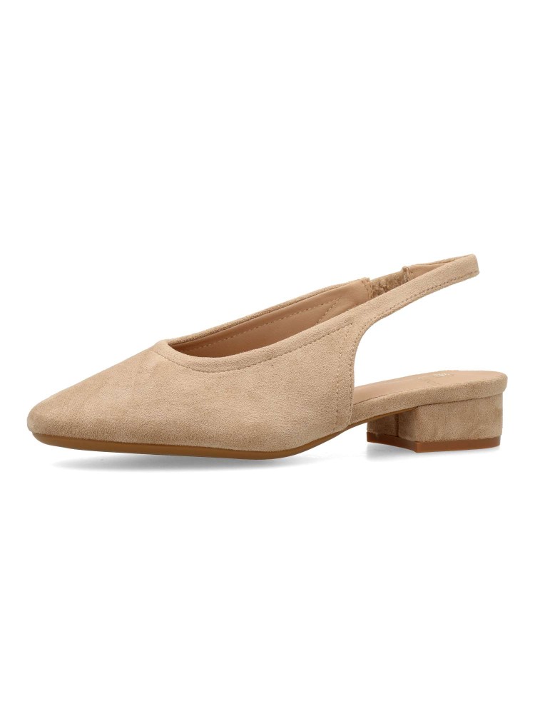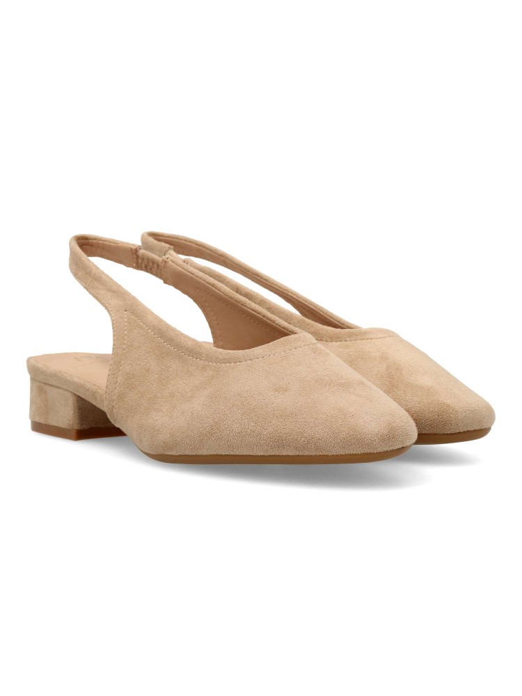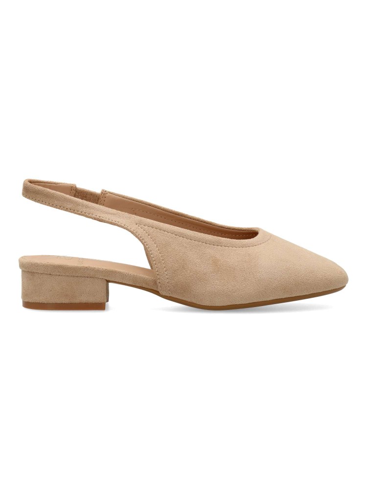Salón de mujer con punta redonda y destalonado. Fabricada en piel sintética antelina, con suela de goma. Plantilla acolchada. Color beige. Tacón de 3 cm. Diseño elegante, cómodo y versátil, que podras combinar con todos tus looks de temporada.