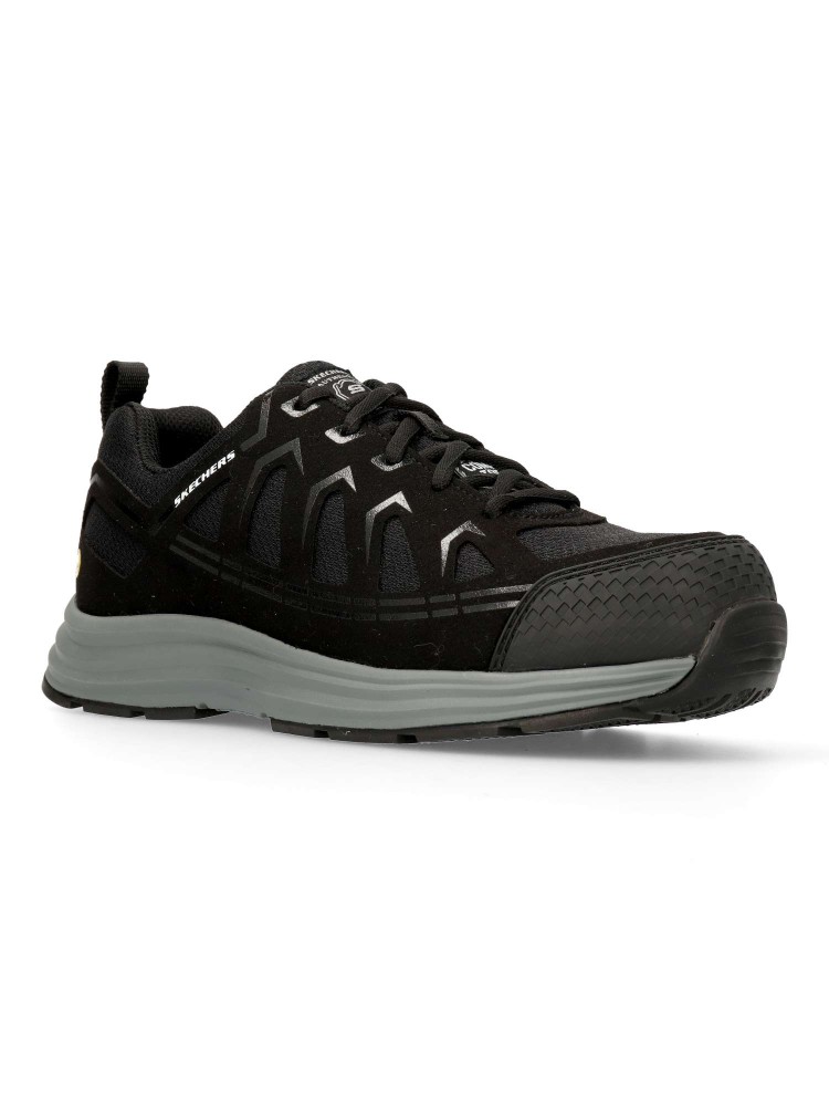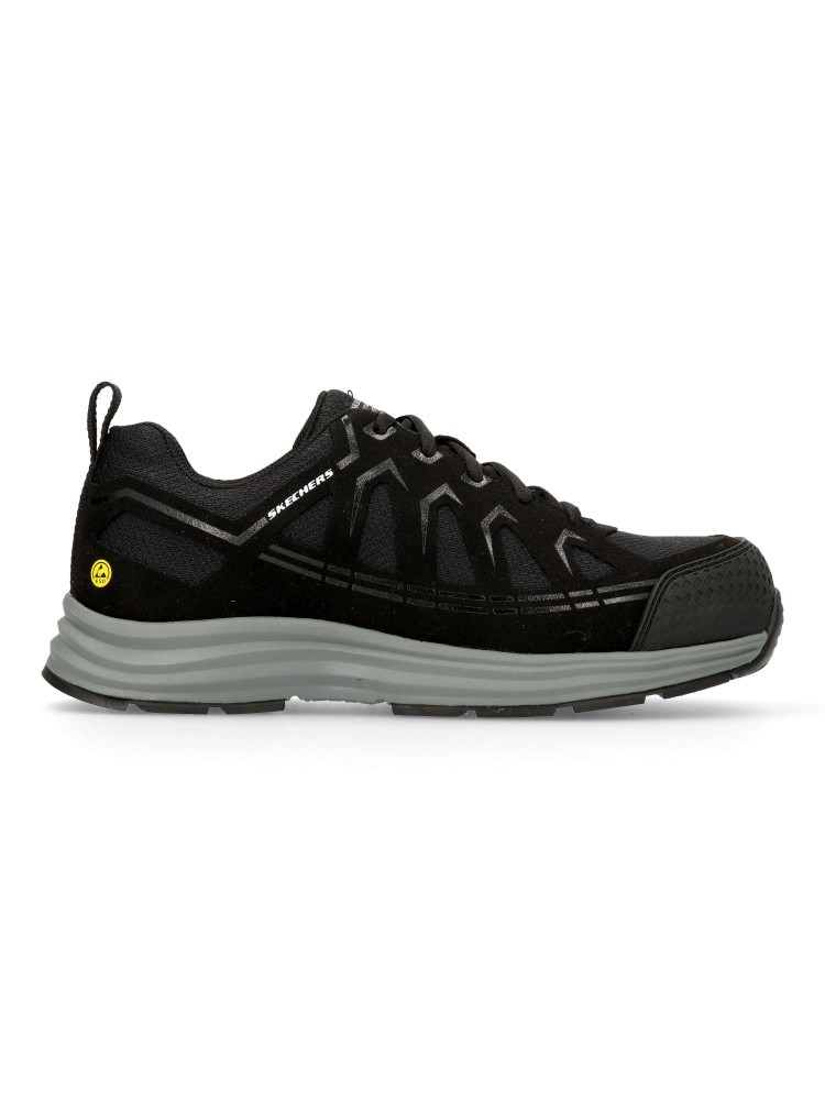 Seguridad y comodidad en la Skechers Work™: Malad II Comp Toe. Un modelo de cordones funcional con una parte superior de malla y tejido sintético con una puntera de seguridad de material de resina. Plantilla resistente a las perforaciones no metálicas.
