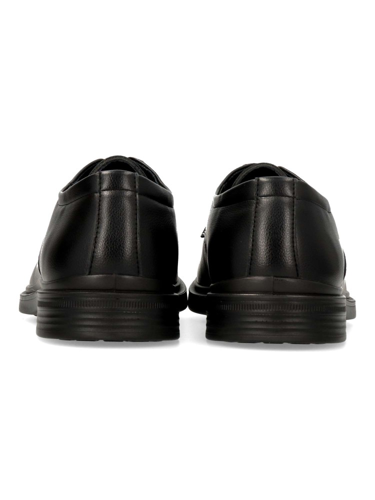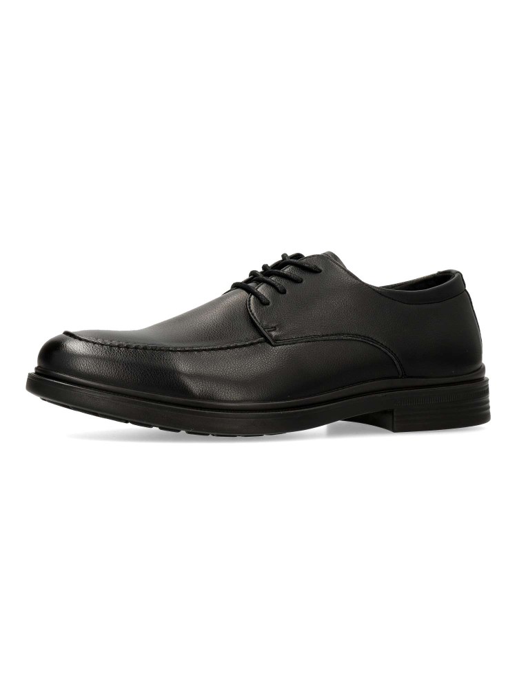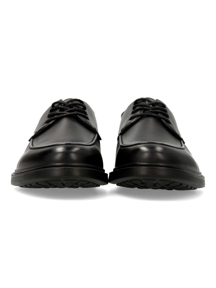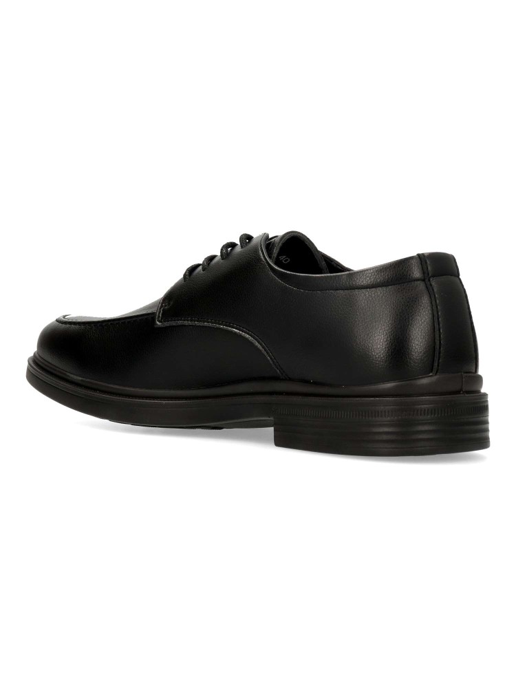 Zapato blucher de hombre, con cierre de cordones. Modelo cómodo, fabricado en piel sintética, con suela de goma. Plantilla acolchada. Color negro. Zapato de vestir, ideal tanto para tu día a día, como para eventos y ceremonias.
