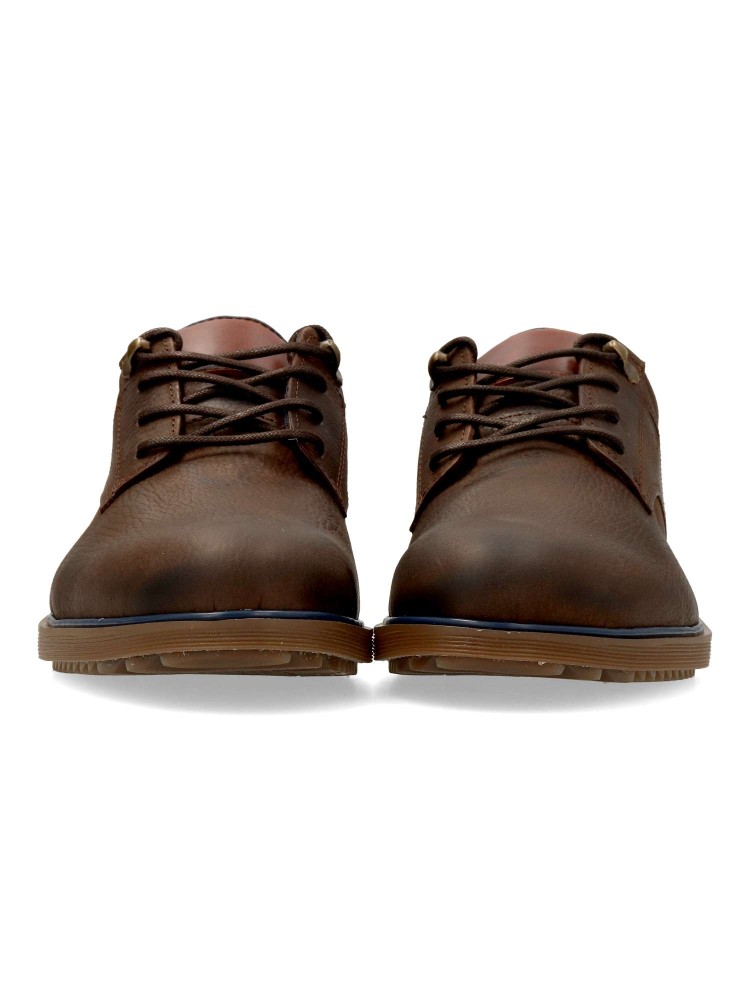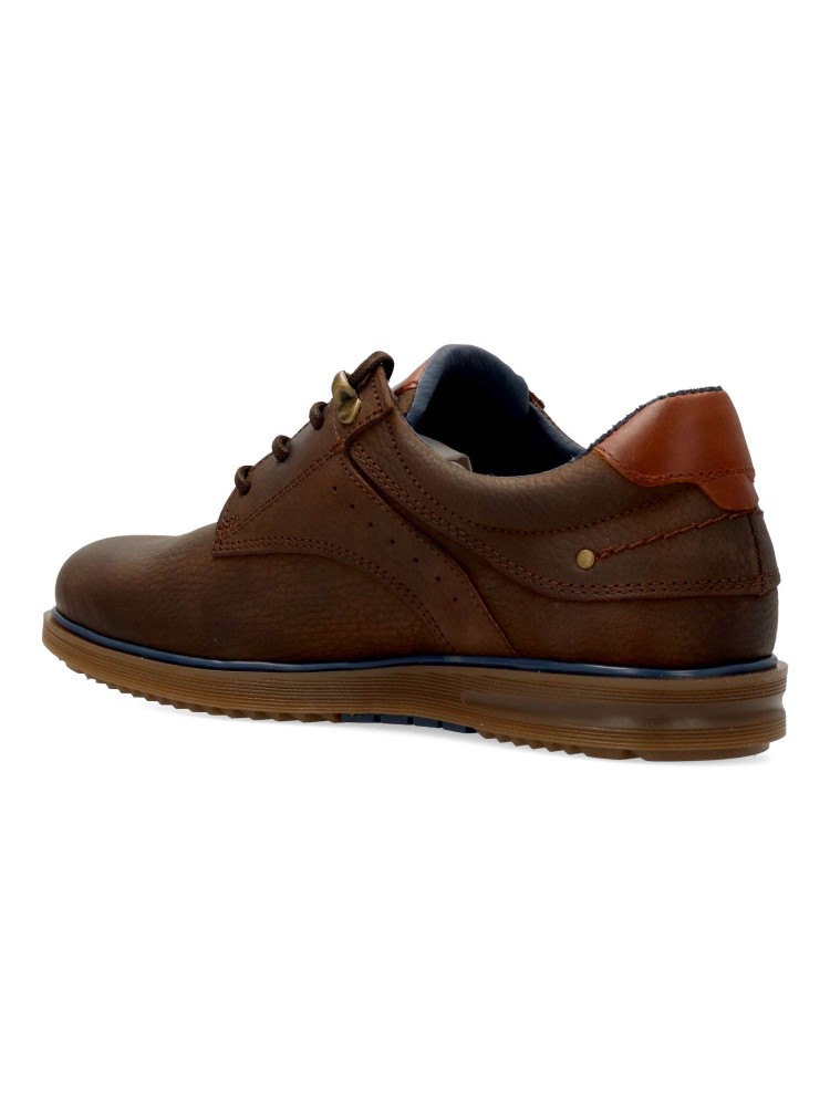 Zapato cómodo de hombre, con cierre de cordones. Cuello acolchado. Modelo fabricado en piel natural nobuck, con suela de goma antideslizante. Plantilla acolchada. Color marrón. Combinan diseño y confort para un uso diario.