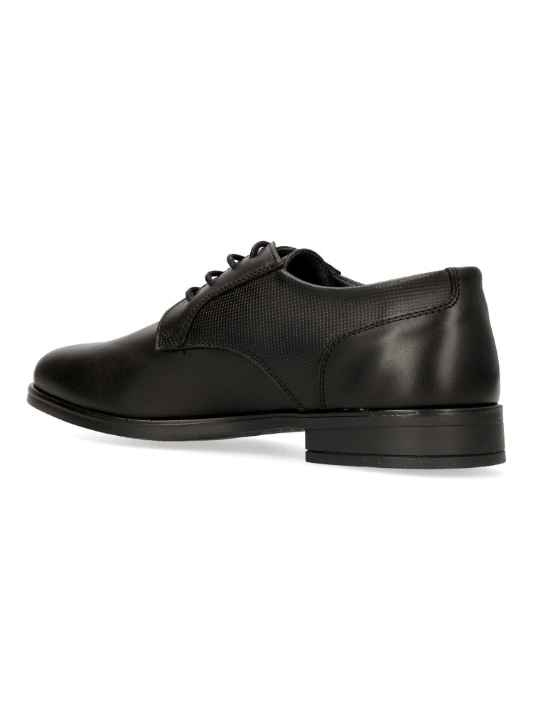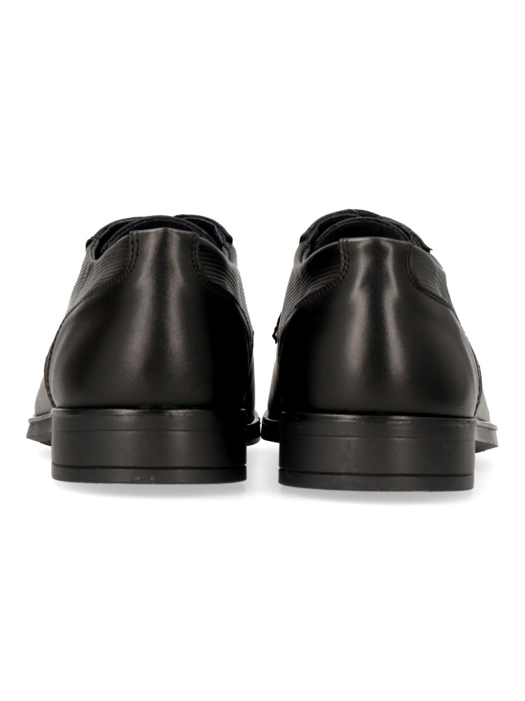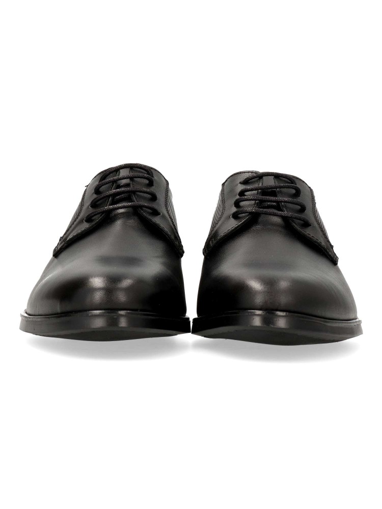 Zapato Blucher para hombre en color negro, básico, sencillo y cómodo. Fabricado en piel napa suave, con suela de goma flexible. Diseño elegante y cómodo, ideal para que tus pies no sufran en tu jornada laboral, eventos y celebraciones. Hecho en España.