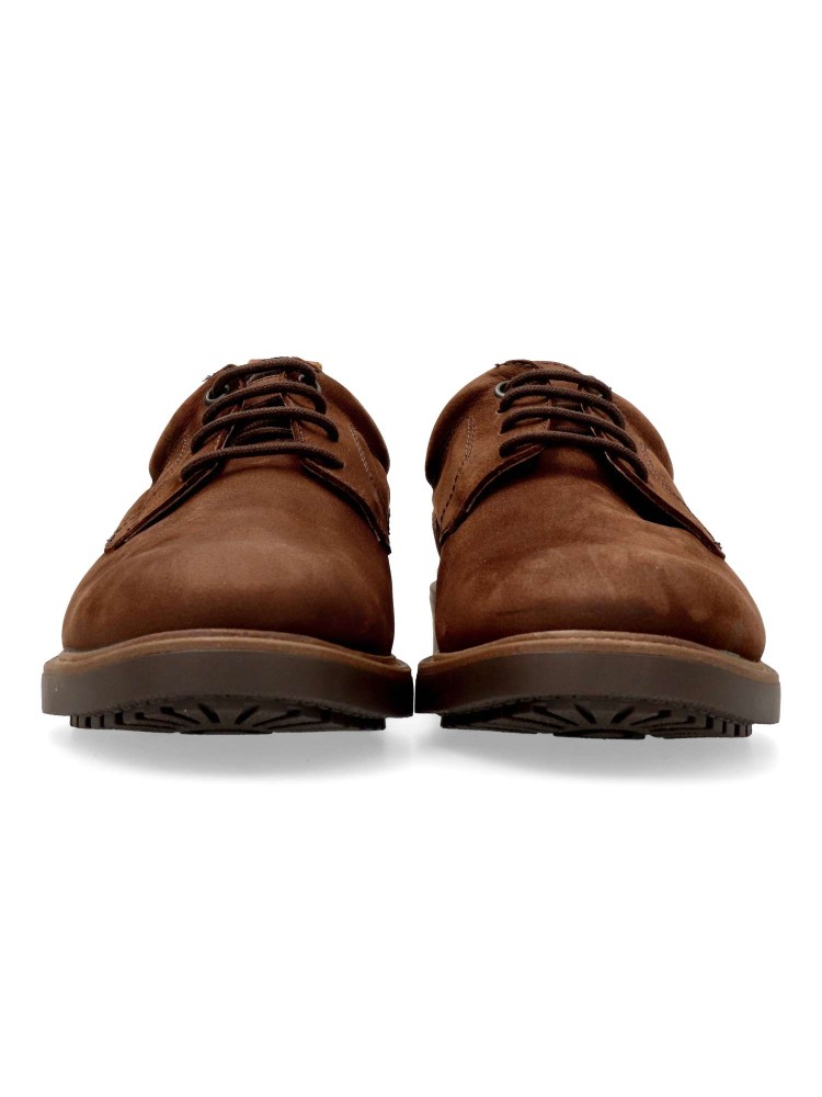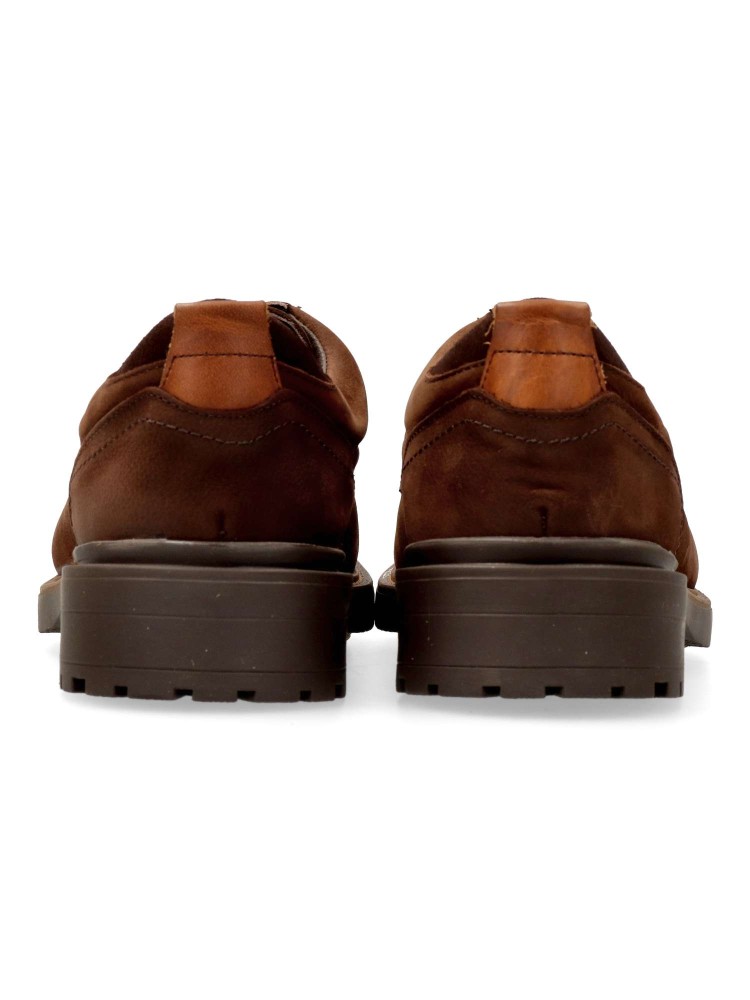 Zapato de vestir con cierre de cordones. Modelo cómodo, fabricado en piel suave, con suela de goma antideslizante. Plantilla acolchada. Color marrón. Un básico para esta temporada que no puede faltar en tu fondo de armario. Hecho en España.
