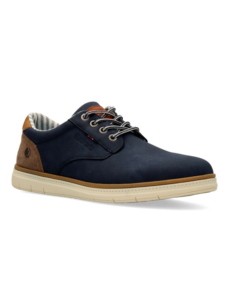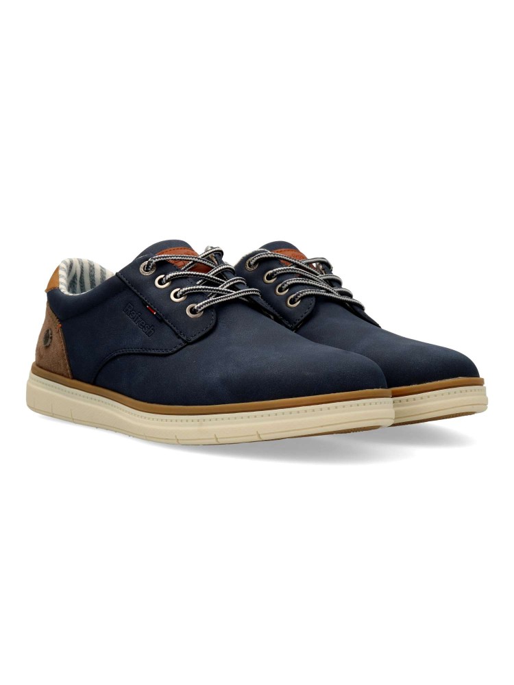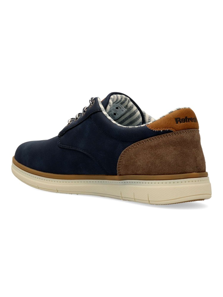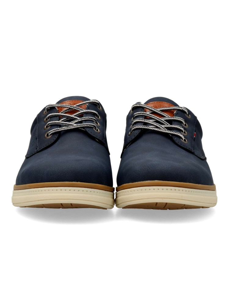 Zapato cómodo de hombre, estilo oxford. Cierre de cordones. Modelo casual, fabricado en material sintético con suela de goma flexible. Plantilla acolchada. Color marino. Máximo confort en un zapato ligero, flexible y transpirable, ideal en tu día a día.