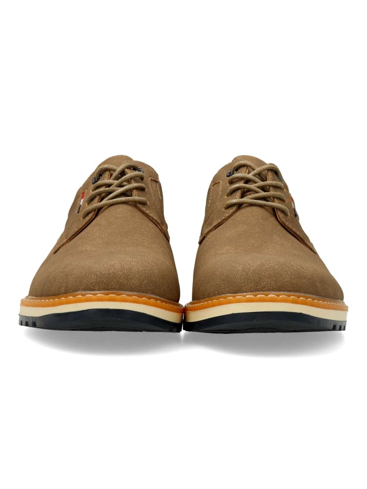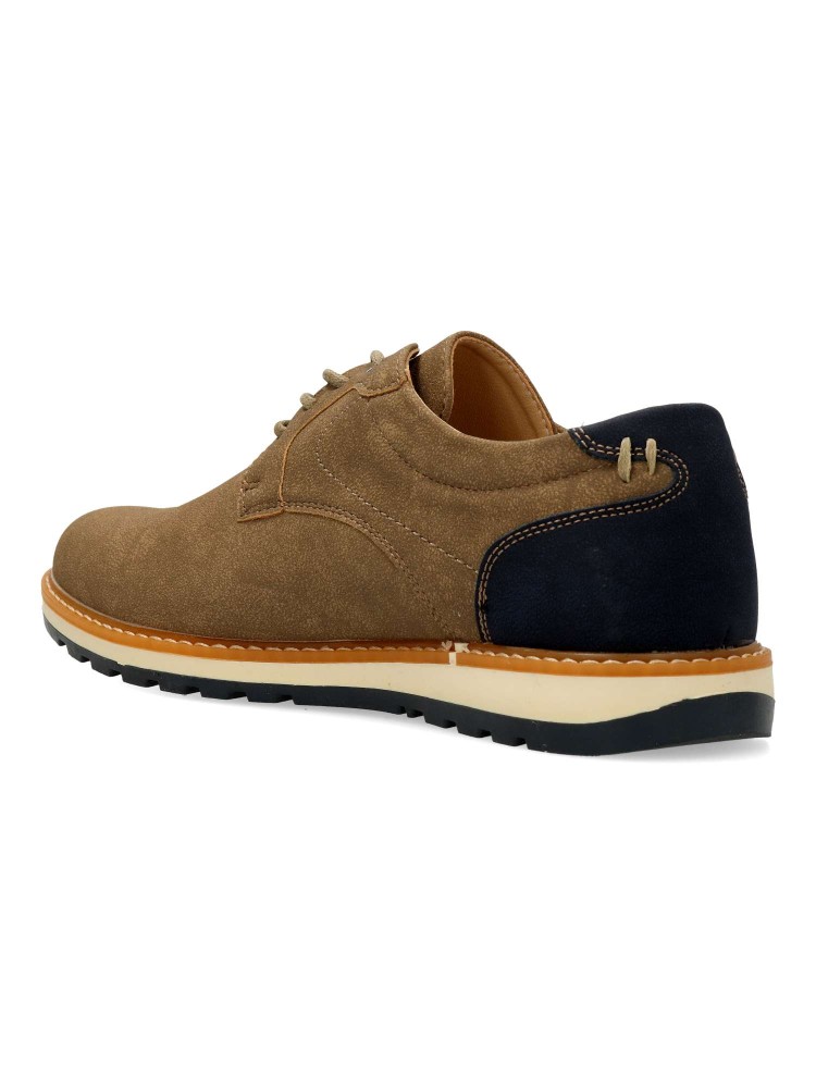 Zapato de vestir para hombre, estilo casual. Cierre de cordones. Modelo tipo oxford, fabricado en material sintético con suela de goma flexible. Plantilla de piel acolchada. Color kaki-marino. Zapato versátil ideal para vestir en tu día a día.