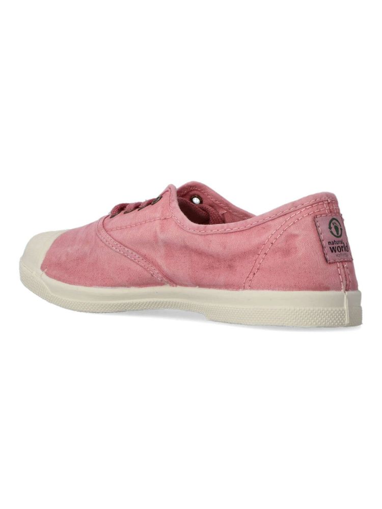 Zapatilla lona ingles efecto desgastado. Ha sido diseñada para el dia a dia. Hechas 100% en España con materiales ecológicos. La parte superior de la zapatilla está compuesta de algodón 100% orgánico y la suela es de caucho natural. Color rosa.