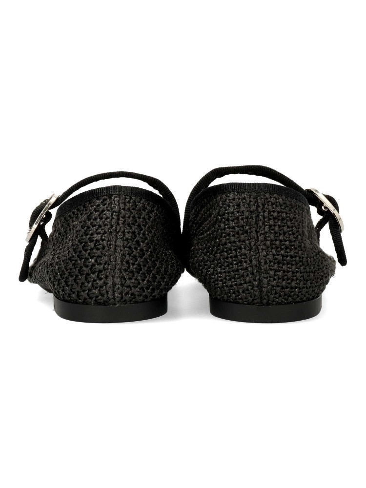 Zapato bailarina Mary Jane de mujer. Tira al empeine con cierre de hebilla. Sabrina plana de corte en ganchillo. Suela de goma flexible. Color negro. Merceditas clásica que no puede faltar con tus looks de diario.