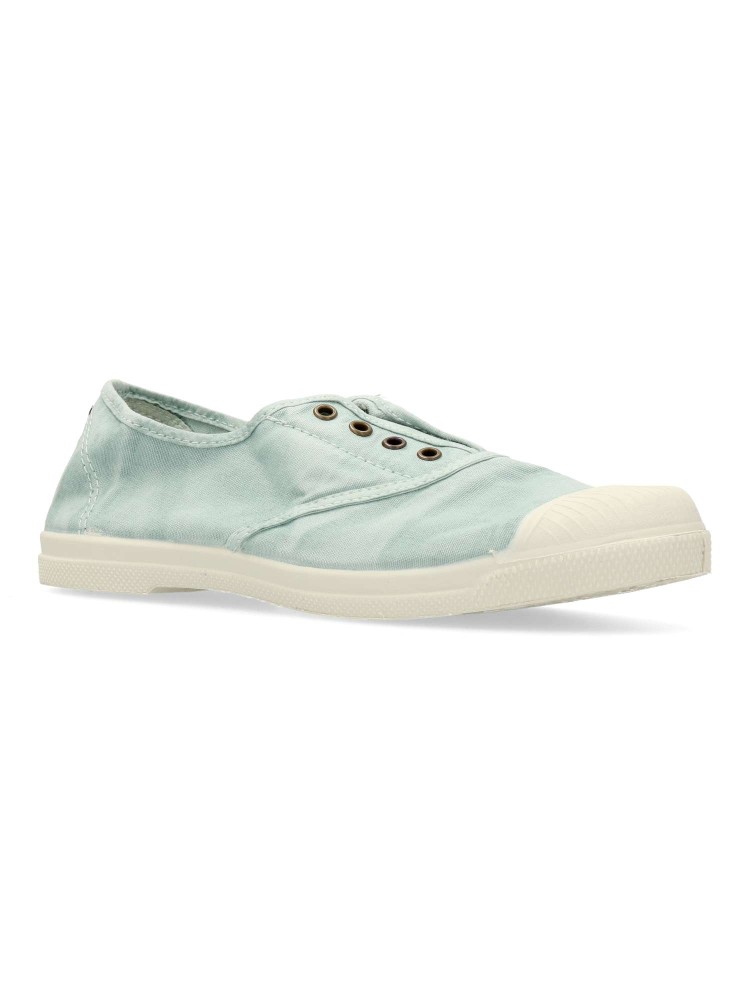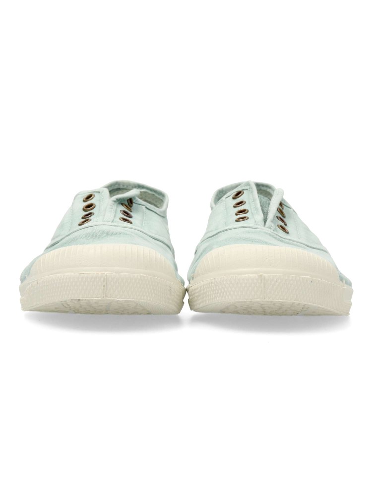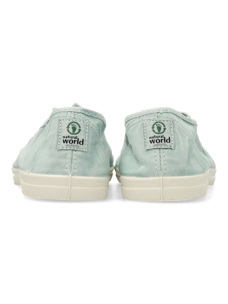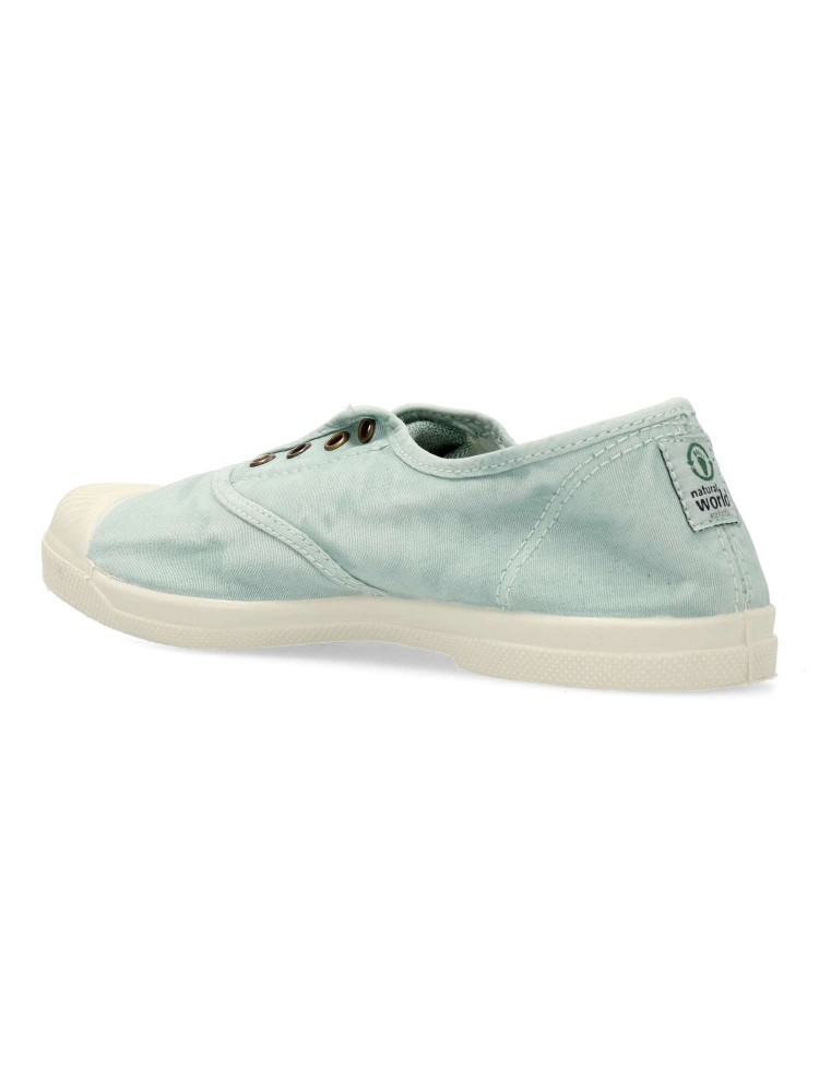 Zapatilla lona ingles efecto desgastado. Ha sido diseñada para el dia a dia. Hechas 100% en España con materiales ecológicos. La parte superior de la zapatilla está compuesta de algodón 100% orgánico y la suela es de caucho natural. Color aguamar.