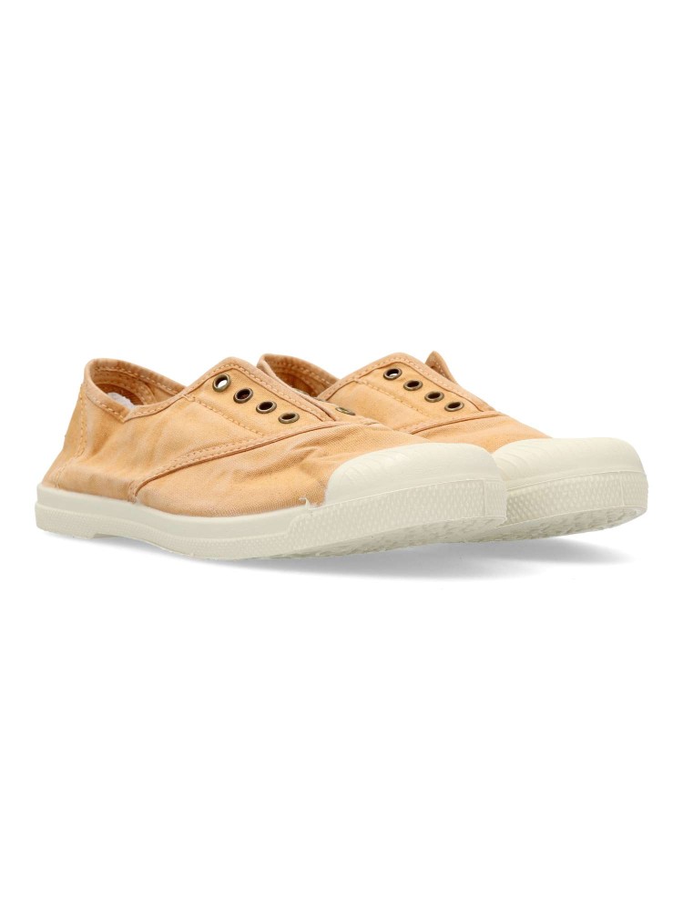 Zapatilla lona ingles efecto desgastado. Ha sido diseñada para el dia a dia. Hechas 100% en España con materiales ecológicos. La parte superior de la zapatilla está compuesta de algodón 100% orgánico y la suela es de caucho natural. Color arcilla.