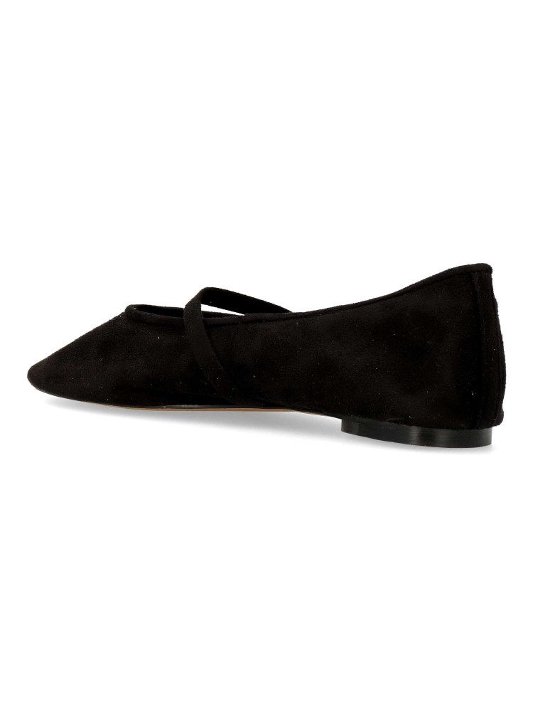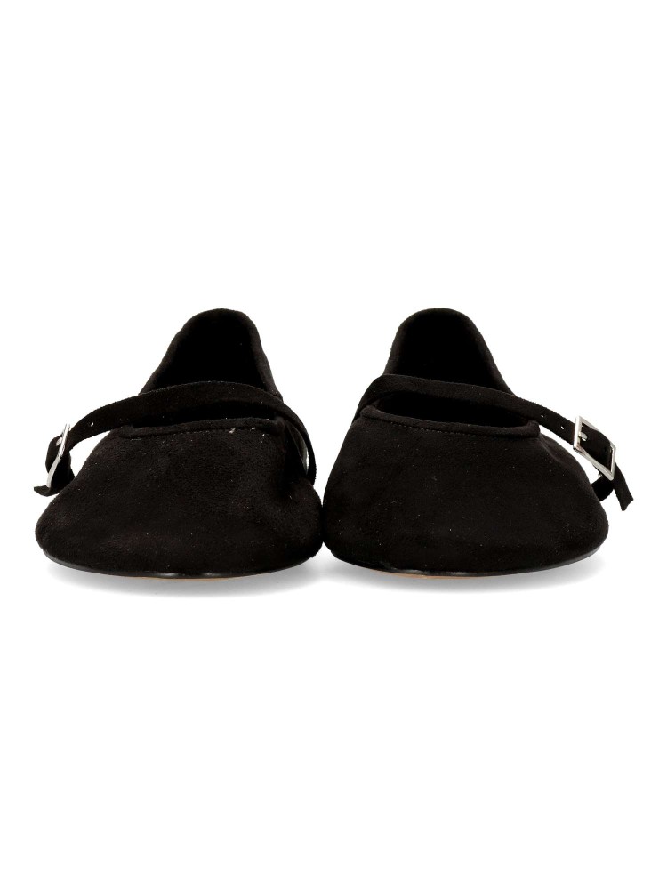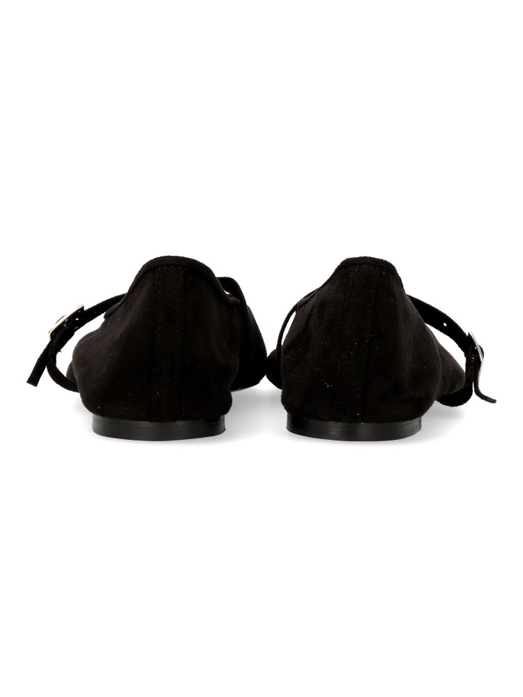Zapato bailarina de mujer, con tira al empeine y cierre de hebilla. Mercedita plana, fabricada en textil antelina, con suela de goma flexible. Planta acolchada. Disponible en color negro. Todo un clásico que no puede faltar en tu fondo de armario.