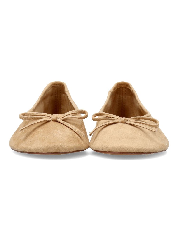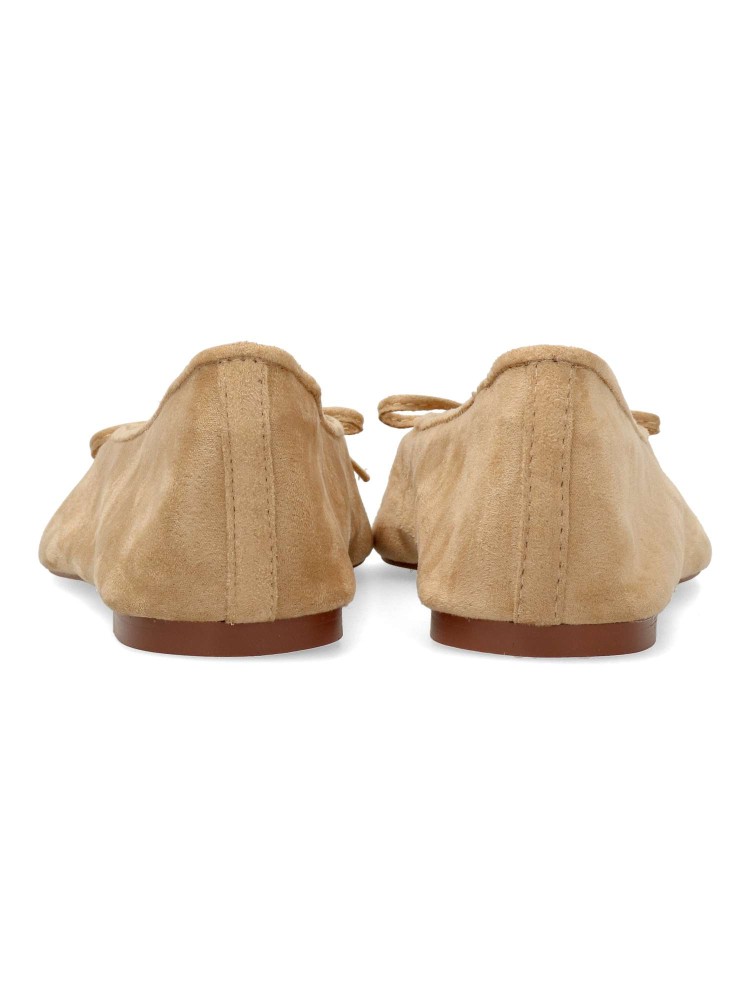 Zapato bailarina cómoda de mujer. Mercedita plana, fabricada en textil antelina, con suela de goma flexible. Planta acolchada. Disponible en color camel. Sabrina con punta redonda, que es todo un clásico y no puede faltar en tus looks de diario.