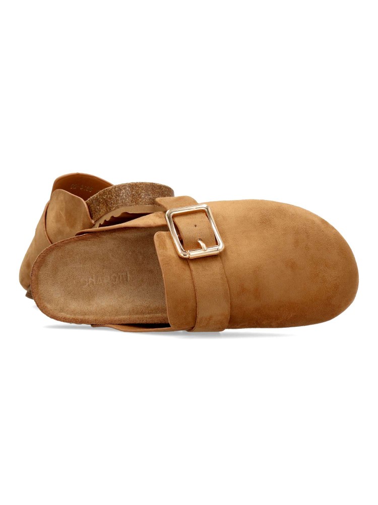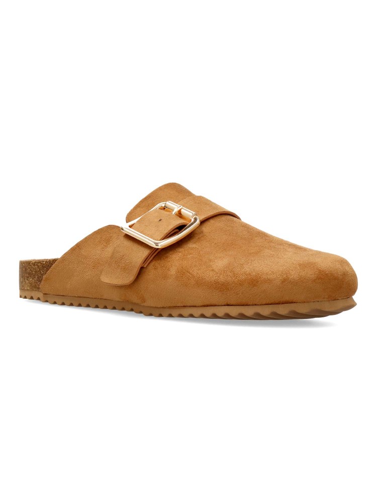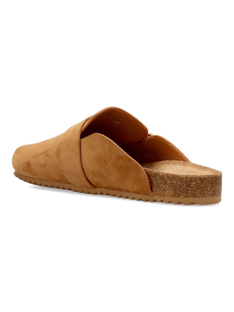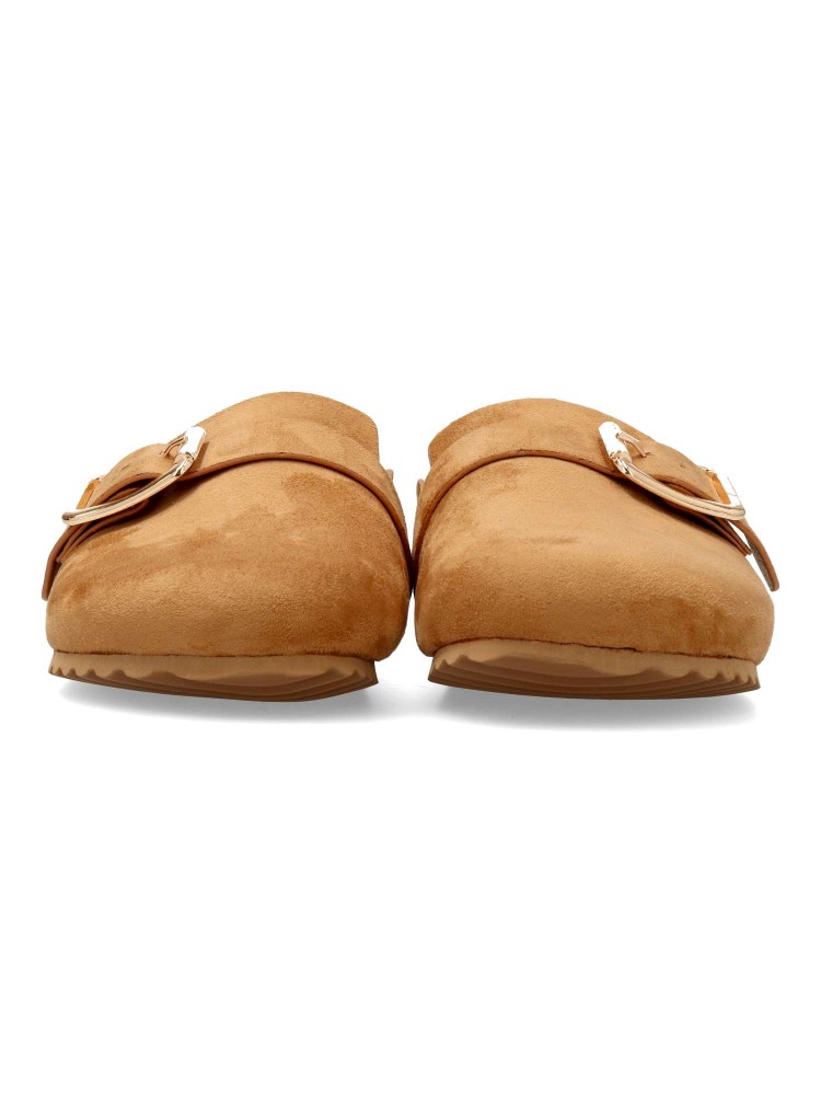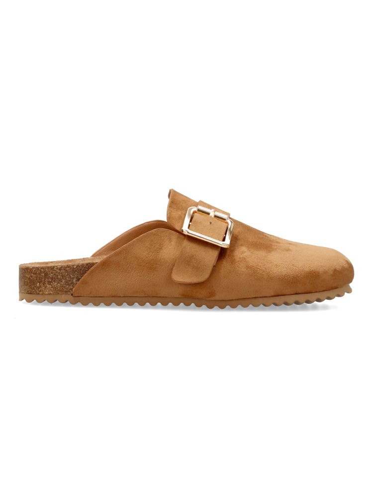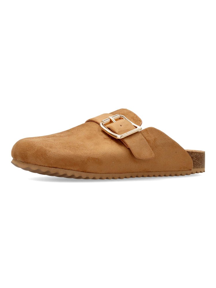 Zapato zueco de mujer tipo bio. Disponible en color camel. Modelo cómodo, fabricado en material sintético, con suela de goma eva. Un clásico muy versátil, que podras combinar facilmente con tus outfits de temporada.